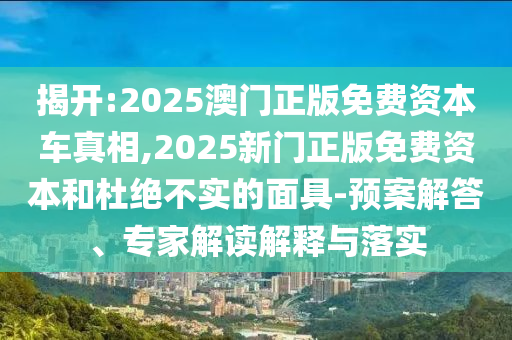 揭開:2025澳門正版免費資本車真相,2025新門正版免費資本和杜絕不實的面具-預案解答、專家解讀解釋與落實