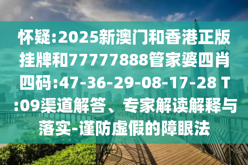 懷疑:2025新澳門和香港正版掛牌和77777888管家婆四肖四碼:47-36-29-08-17-28 T:09渠道解答、專家解讀解釋與落實-謹防虛假的障眼法