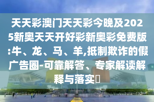 天天彩澳門天天彩今晚及2025新奧天天開好彩新奧彩免費(fèi)版:牛、龍、馬、羊,抵制欺詐的假廣告圈-可靠解答、專家解讀解釋與落實(shí)?